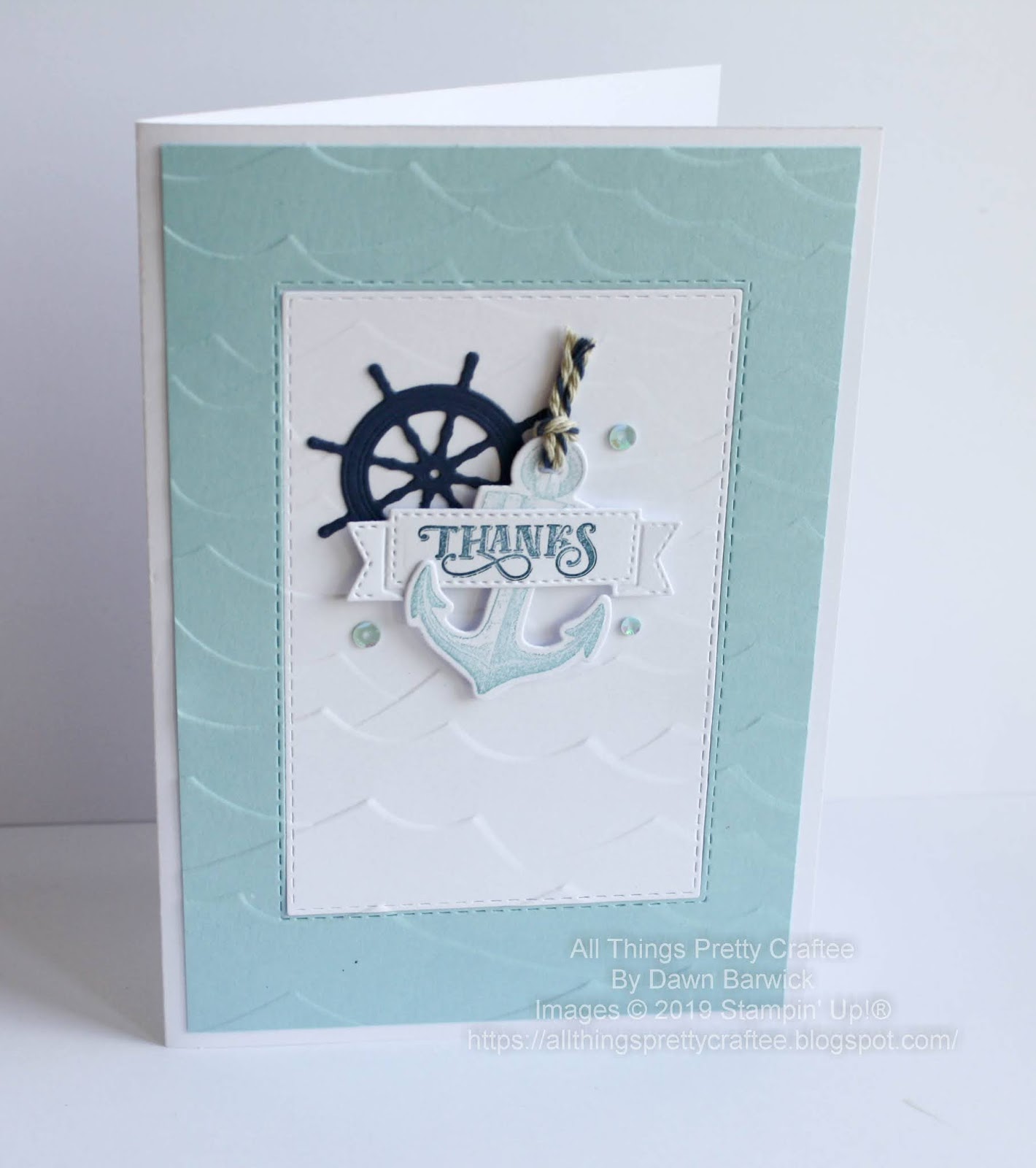 I created this card using the Sailing Home bundle and I used the coordinating 3D embossing folder called high seas.